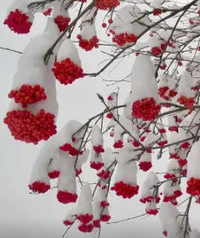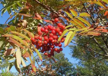 秋には紅葉し、真っ赤な丸い実が房になって実ります。