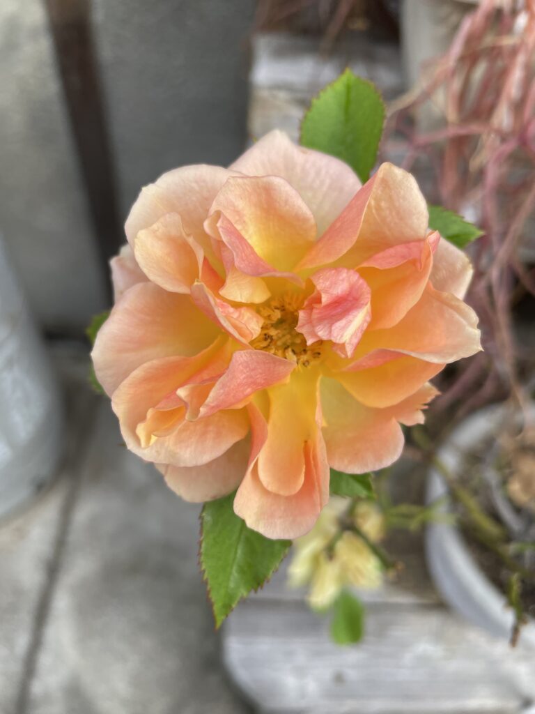 バラです。これも歩いていてよそのお宅に咲いているのを見かけました」。