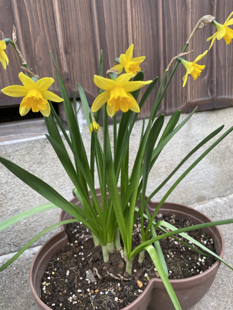 よそのお宅の前に咲いていました。今年初めて見た水仙の花です。