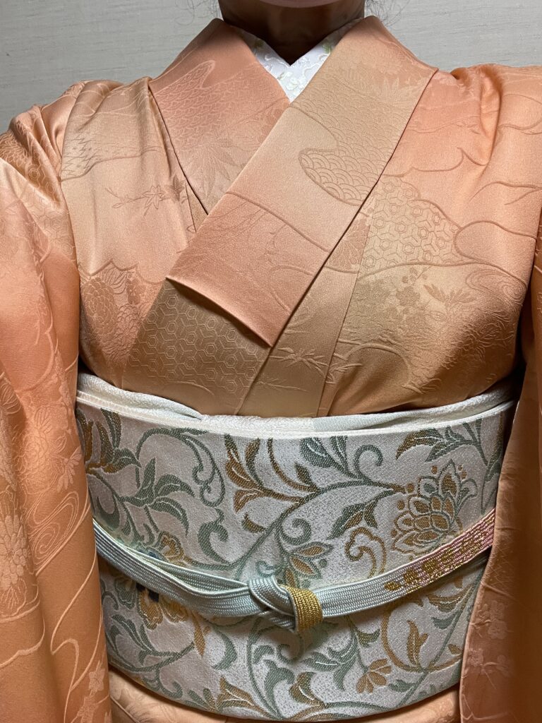 帯は唐草模様の袋帯です。