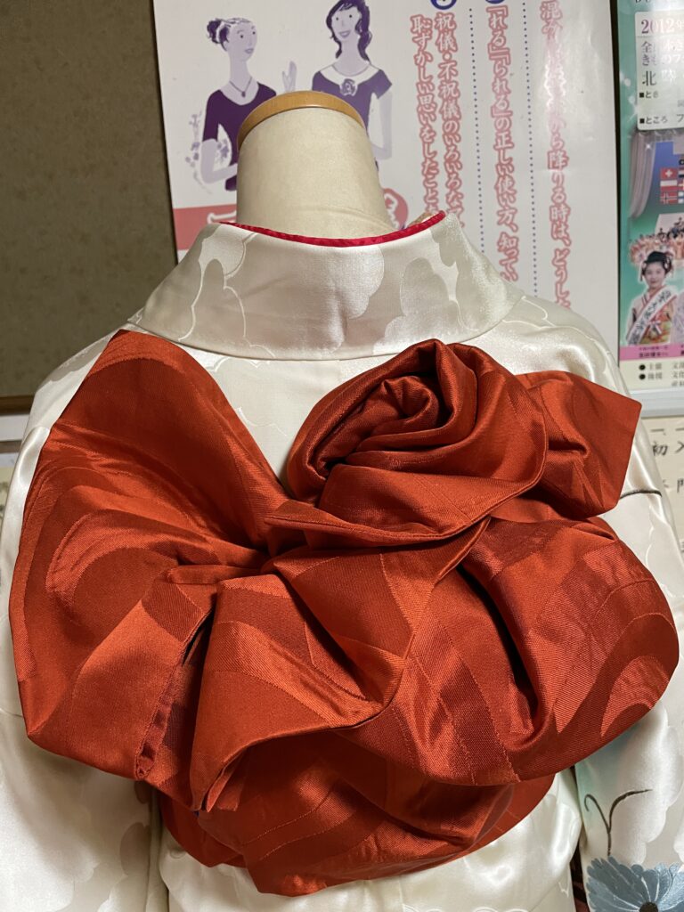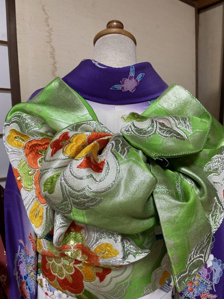 振袖用の代わり結びを結んでいます。