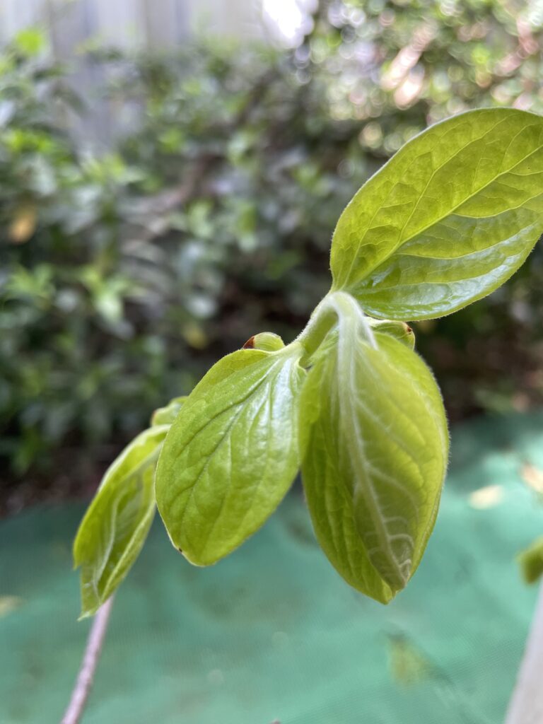 主人が柿の種をプランターに植えておいたら芽が出て5~6年になります。春になると元気に芽が出ています☘️🍃