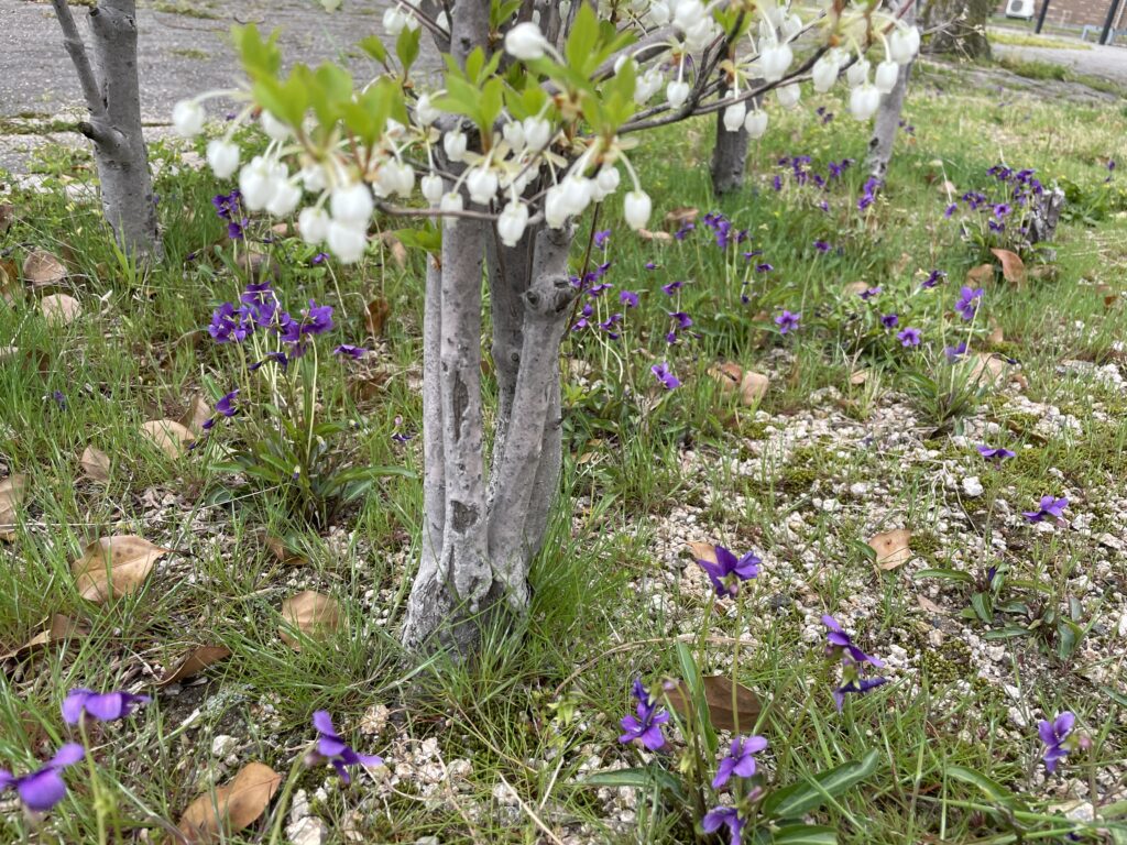 ドウダンツツジとスミレの競演です。